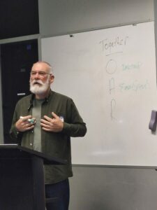 The feeling of togetherness was strong throughout the meeting, with great mix-and-mingle during the break, generous applause for speakers, and lots of questions that helped involve the audience.
